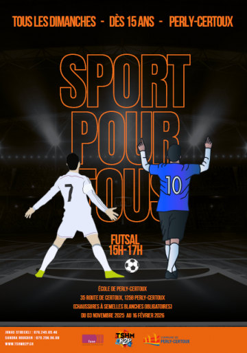 Retrouvez nous tous les dimanche pour un Sport Pour Tous Futsal à l'école de Perly-Certoux.